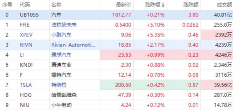 华盛资讯2月28日消息,美股汽车股多数走高,小鹏汽车涨5.35%,报9.06美元每股,法拉第未来涨超5%,Rivian涨超2%,公司将于盘后公布业绩,理想汽车涨近1%,福特汽车跟涨;特斯拉微涨0.42%,报208.5港元美股。蔚来微跌。