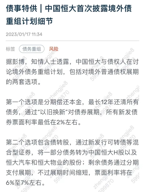 早在1月中,恒大债务重组方案流出。