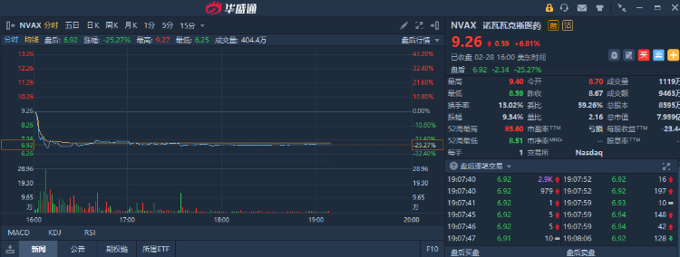 美东时间2月28日美股盘后,诺瓦瓦克斯医药(NVAX.US)公布了一份营收及利润均不及预期的第四季度业绩,与此同时,该公司还发出了持续经营警告。受此影响,该公司股价盘后大跌逾25%。