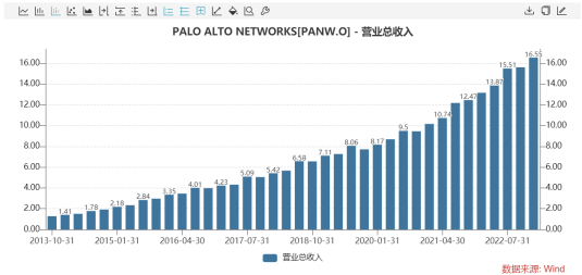 2、网安行业龙头派拓网络 $PANW ,营业收入增长稳健,大客户拓展卓有成效,未来成长可期。