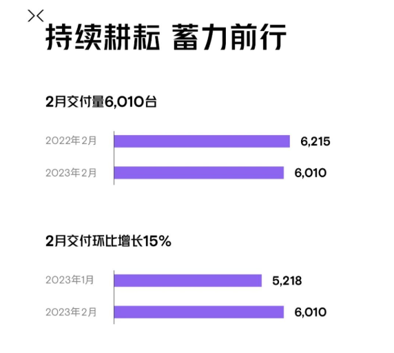 据小鹏汽车官微消息,2月交付量为6010辆,环比增长15%。