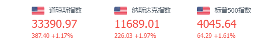 道琼斯指数上周涨1.75%,报33390.97点;纳斯达克指数上周涨1.97%,报11689.01点;标普500上周涨1.9%,报4045.64点。截至上周五收盘,特斯拉收高3.61%,苹果收涨3.51%,Meta Platforms大涨6.14%。