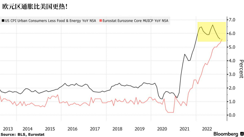 对外汇交易员来说,美国国债收益率可能降低的一个关键原因是,欧元区通胀前景明显更为可怕,利率交易员预计欧洲央行本月将继续加息50个基点,而美联储的加息幅度预计只有欧洲央行的一半。