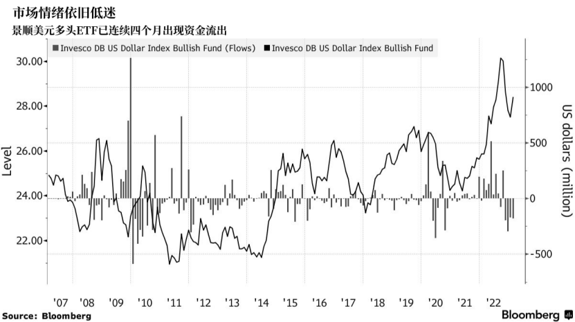 投资者并没有等着确定美元的反弹之势已经结束:过去四个月投资者从全球最大的多头美元ETF中撤出了逾8.4亿美元,这是自2019年以来持续时间最长的一次。