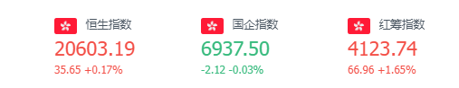截至周一收盘,恒指涨0.17%,报20603.19点,中国石化、中海油大涨逾3%,领涨蓝筹;国企指数跌0.03%,报6937.50点;恒生科技指数跌0.81%,蔚来大涨逾5%。