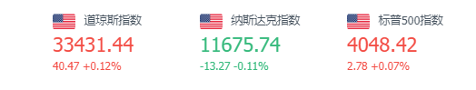 截至周一收盘,道指涨幅为0.12%,报33431.44点;纳指跌幅为0.11%,报11675.74点;标普500指数涨幅为0.07%,报4048.42点。特斯拉收跌2.01%,苹果收涨1.85%,阿里巴巴收跌0.09%。