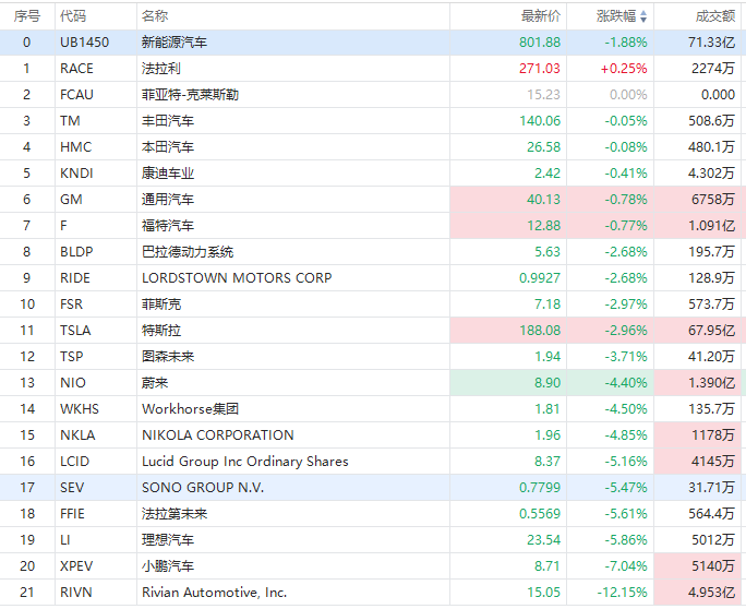 美股新能源走低 ,Rivian $RIVN 大跌12%,小鹏汽车跌超6%,理想汽车、Lucid、法拉第未来跌超5%,蔚来跌超4%,特斯拉跌超3%。