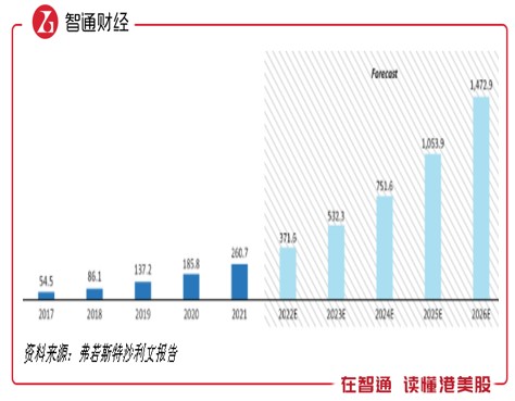 从行业来看,根据弗若斯特沙利文,人工智能行业处于快速发展阶段,2021年市场规模为2607亿元,近五年复合年增长率47.9%,预计到2026年将达到14729亿元,复合增长率41.4%。2021年国内人工智能渗透率为7.7%,按年逐年提升,预计到2026年将达到32.7%,未来有很大的成长空间。