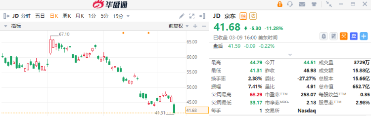 京东绩后大跌11.28%,Q4净营收2954亿元 符合预期