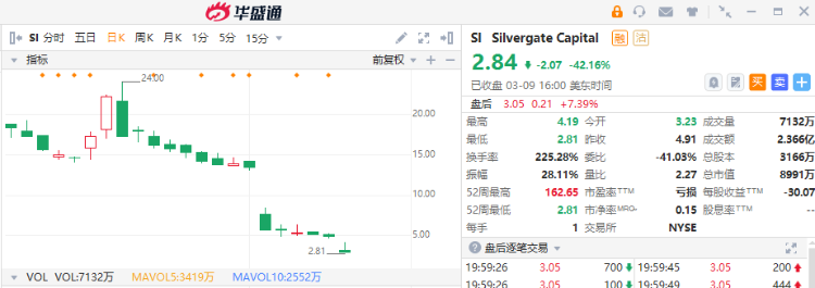 如果说Silvergate只是家小银行,2021年加密货币热潮时,其市值最多只有70多亿美元,现如今,其市值已经跌到不到1亿美元。