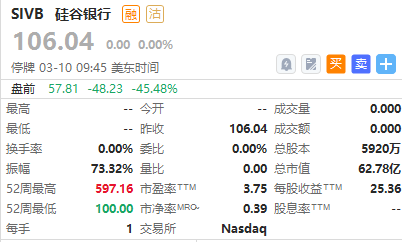 几乎是直线下跌——硅谷银行股价周四下跌60%,市值蒸发96亿美元