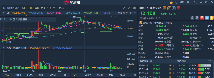 近年国 内人民对医疗需求提升,人口特征的变化,收入增加及加上政府对「健康中国2030」战略之推进医药行业仍会是将来的经济支柱。集团持续引进新产品、拓展、营销和网络推广,以提升业务稳健增长。可于现价12.10元附近吸纳,中长线可见17.30元,跌穿10.70元止蚀。