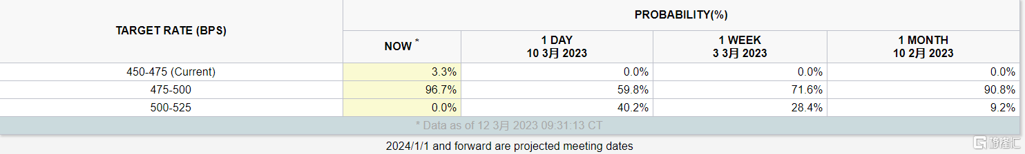 当下,市场对3月份加息50个基点的几率从75%暴跌至不足10%,5月份加息50个基点的几率已被抹去。目前市场上有关“美联储是时候考虑暂停加息甚至降息”的声音正越来越多。