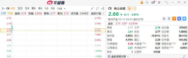 美股银行股盘前多数上涨,瑞士信贷、美国银行涨约3%,荷兰国际银行、富国银行、花旗集团涨超2%,汇丰控股涨1.7%。 第一共和银行盘前跌超20%,前两日累计跌幅近30%。