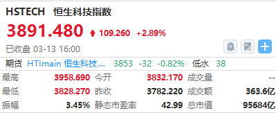 受以上消息和预期影响,港股市场今日迎来大涨,截止收盘,恒生科技指数涨近3%。此外,美股三大股指期货也是纷纷走高。
