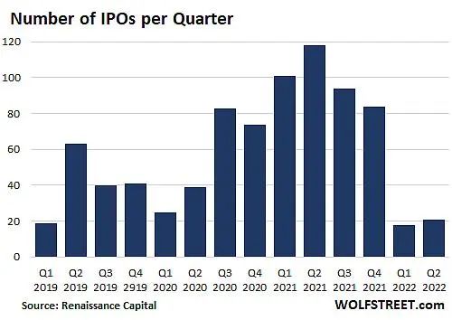 彼时美股市场仅有21宗IPO,且大部分规模较小,根据Renaissance Capital的数据,与前一年度上半年118宗IPO相比,无论IPO数量还是募资规模都呈断崖式下跌。
