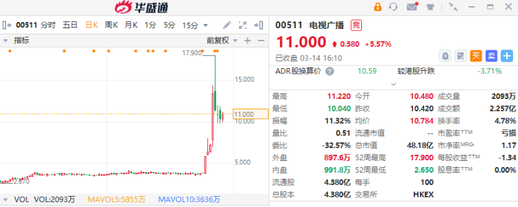 据港交所数据,美国道奇·考克斯基金公司(Dodge&Cox)3月9日减持TVB母公司电视广播(00511.HK)。持股比例由9.45%降至8.08%;持股数减少600.61万股至约3540万股;按平均股价13.0498港元计,涉资约7838万港元。