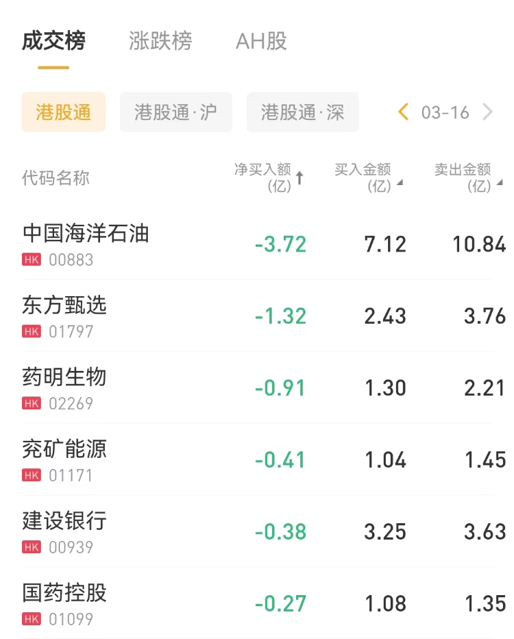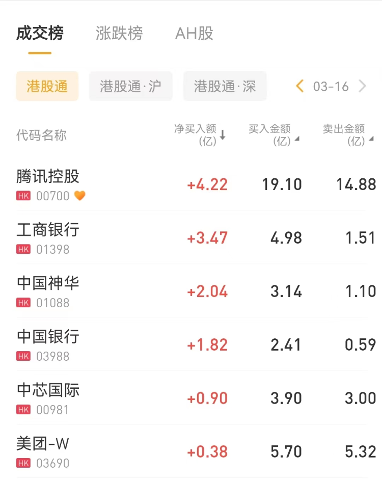 南下资金今日净买入港股20.62亿港元。腾讯控股,工商银行,中国神华分别获净买入4.22亿港元、3.47亿港元、2.04亿港元;中国海洋石油净卖出额居首,金额为3.72亿港元。