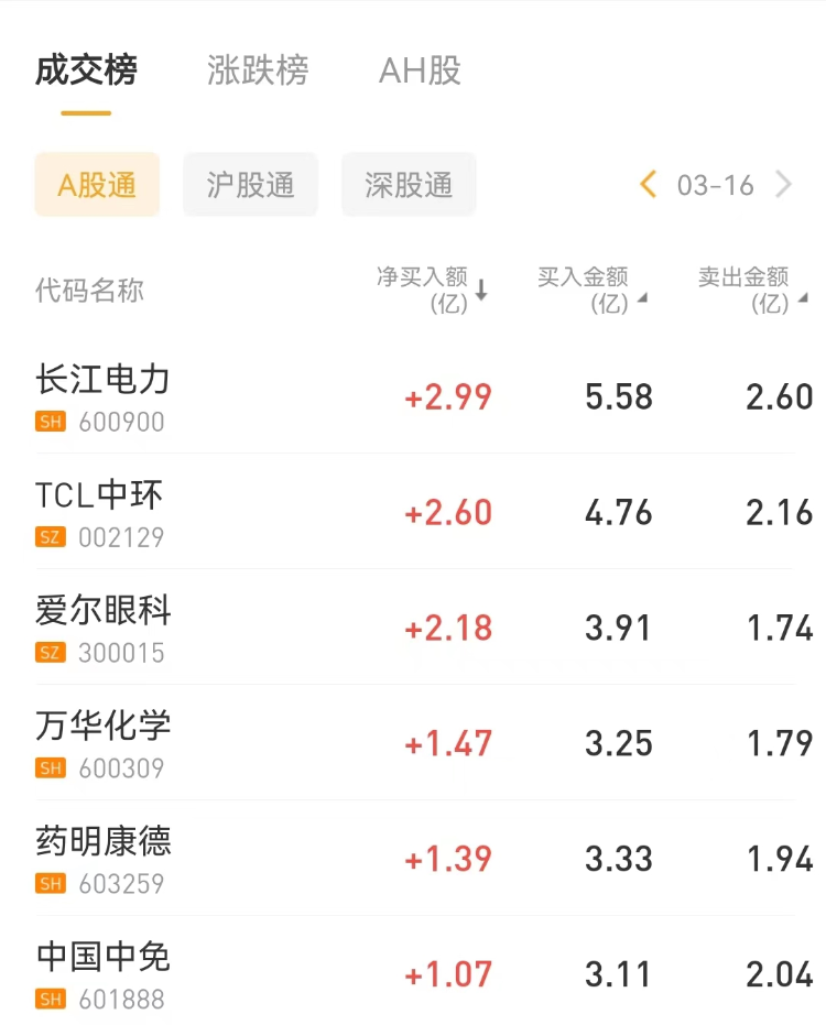 北向资金今日净买入7.87亿元。长江电力,TCL中环,爱尔眼科分别获净买入2.99亿元、2.60亿元、2.18亿元。中国平安净卖出额居首,金额为9.17亿元。