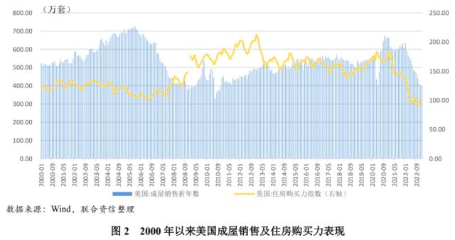 与2008年类比来看,本次处于传导链条第二步的早期阶段,本次也是美联储开启强势加息节奏,且美国房地产已经出现区域性下跌信号。第一步,美联储自2022年3月以来连续加息8次累计450个BP,将联邦基金利率提升至4.50%~4.75%利率区间,平均加息幅度高达56个BP,远超2008年25个BP的平均加息幅度,美联储本次加息节奏较2008年更为强势。第二步,美联储密集而强势的加息节奏带动美国30年期抵押贷款利率一路飙升至6.73%(2023年3月9日),飙升的利率水平会打击购房者信心以及削弱购房者的购买力,对房地产销售和房价均造成巨大阻碍。2023年1月美国成屋销售折年数下降至400万套,连续12个月环比负增长,降至2010年11月以来新低,美国房地产市场急速降温。美国房地美房价指数自2022年6月以来连续7个月小幅下降,美国房价仅为区域性下跌,其中特拉华州、加利福尼亚州以及伊利诺伊州较美联储开始加息前降幅均超过5%,房价下跌州的数量约占全美的25%,暂未出现全美范围内的房价大幅下跌,目前仍处于第二步的早期阶段。但从长远看,美联储持续加息和美国房屋价格回落是大势所趋,会增大美国房屋抵押贷款违约的风险。2022年12月美国居民住房购买力指数已降至101.2,跌落至2006年美国次贷危机爆发前水平,房屋断供及违约风险有所走高。如果年内美联储继续强势加息,大概率会带动房贷利率继续走高,受此影响居民住房购买能力将进一步削弱,预计美国住房按揭贷款违约的风险将进一步增大。