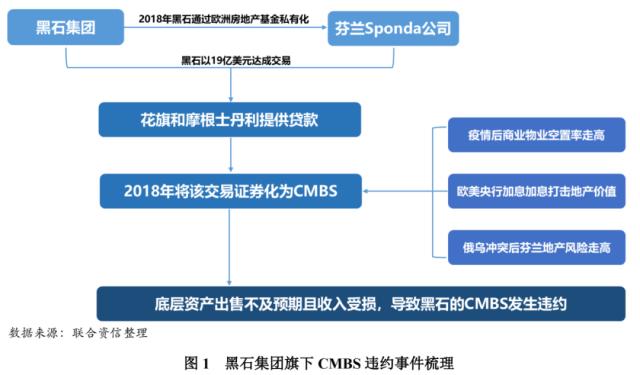 2023年3月2日,贷款服务机构Mount Street判定黑石集团有价值5.6亿美元的商业地产抵押贷款支持证券(CMBS)发生违约,这批证券是以2018年收购的芬兰企业Sponda Oy所拥有的一系列写字楼和商店为担保,该证券化票据已经到期但尚未偿还。黑石旗下的CMBS违约引发市场关注,担忧美国或重现“雷曼时刻”。