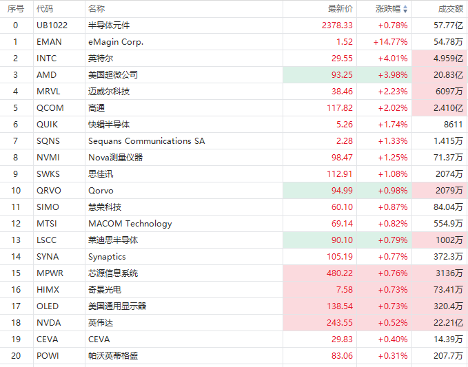 华盛资讯3月16日消息,三大指数低开震荡,半导体板块震荡走高,英特尔涨超4%,美国超微公司涨超3%,迈威尔科技,高通涨超2%,Qorvo,思佳讯,芯源信息系统,莱迪斯半导体涨超1%。