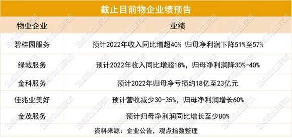 观点指数 进入3月后,数家物企都对2022年的业绩进行了披露或预告。