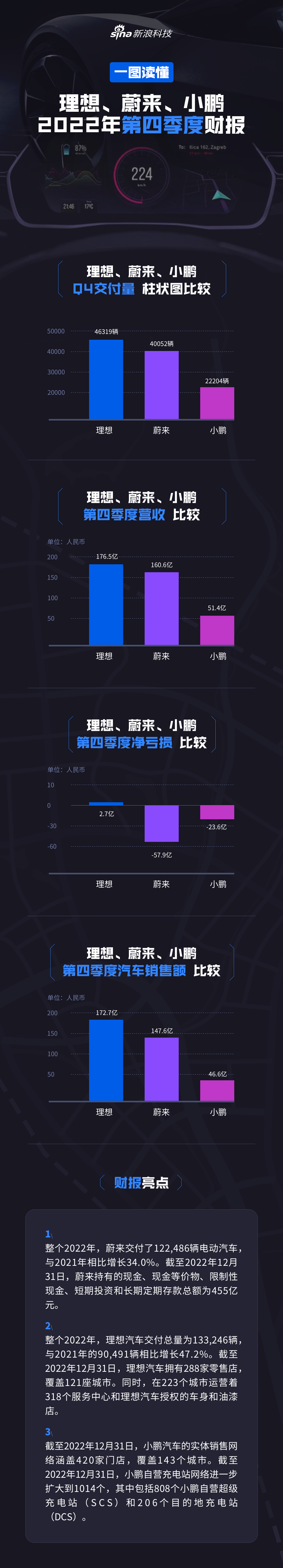 一图看懂蔚来、小鹏、理想汽车2022年第四季度财报。