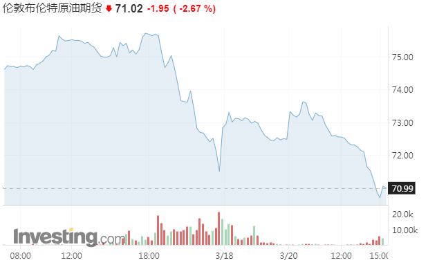 值得一提的是,瑞士信贷(CS.US)的动荡引发了整个市场的恐慌,本周全球市场动荡不安。受此影响,油价已跌至15个月低点,布伦特原油上周下跌12%,截至发稿,布伦特原油跌2.67%,报71.02美元/桶。