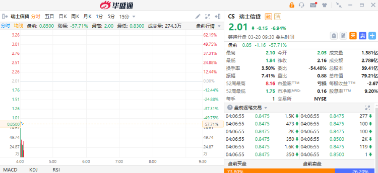 截至发稿,瑞士信贷盘前跌超57%,瑞银盘前跌超9%。当地时间3月19日,瑞士联邦政府宣布,瑞银集团(瑞银)将以30亿瑞士法郎收购瑞信。