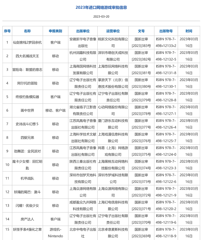 国家新闻出版署发布2023年进口网络游戏审批信息,共27款游戏获批。