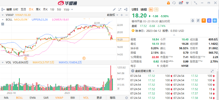瑞银把瑞信收入囊中,会不会把瑞银拖下水?不知道。一个不好的现象是,据媒体报道,瑞银1年期CDS跃升16个基点至114个基点,5年期CDS夸大4个基点至179个基点。今日美股盘前,瑞银股价跌逾12%。