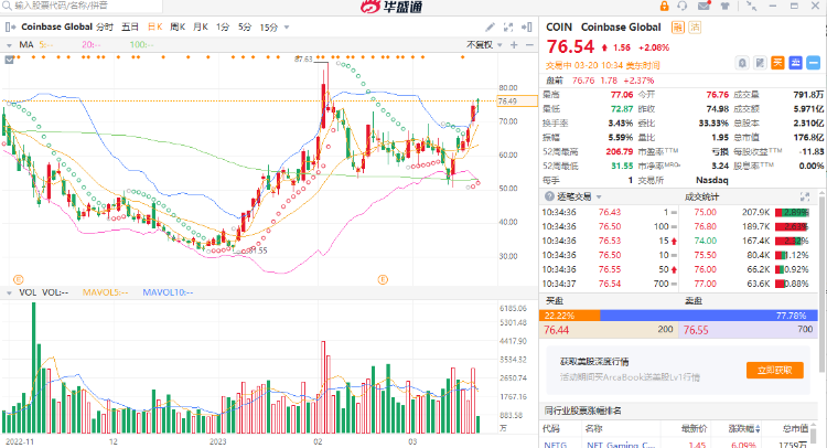 2023年以来,Coinbase的累计涨幅达到112%,而在其上涨过程中的每一个回调期间,“木头姐”均进行了增持。数据显示,ARK最近一次对Coinbase的加仓发生在3月9日和10日,硅谷银行暴雷事件引起市场恐慌,拖累Coinbase下跌7.8%和8%并触及阶段性低点,“木头姐”无视恐慌逆势加仓约47.34万股。