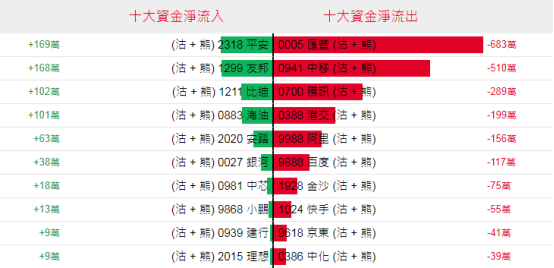 淡仓(认沽证及熊证)方面,周一中国平安、友邦保险、比亚迪股份等相关淡仓均录得部分资金净流入部署; 汇丰控股、中国移动、腾讯控股等相关淡仓分别约683万、510万及289万港元资金净流出套现。