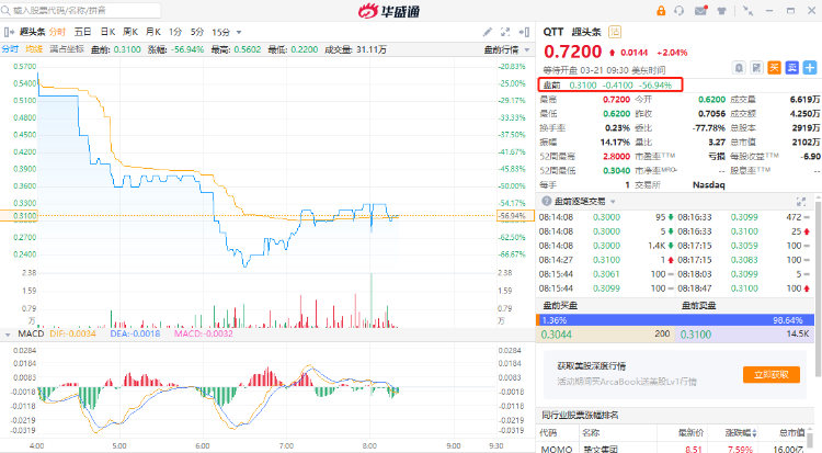 趣头条 $QTT 盘前跌57%。公司收到纳斯达克股票退市决定函