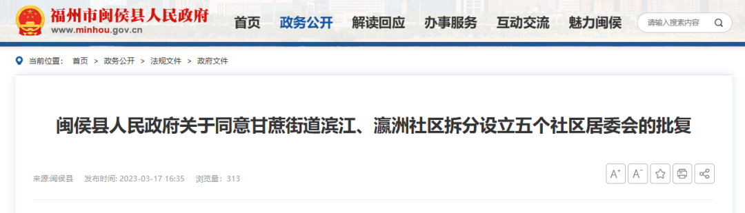近日,闽侯县人民政府网站发布了