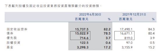 资管业务方面,公司2022年中期资产管理规模总额约为260.87亿港元,较2021年12月31日减少20.5%;资产管理及顾问服务费收入减少510万港元或19.2%至2140万港元。自营交易亏损为3.88亿港元,乃关于根据资产管理协议向一名客户的保证收益付款。