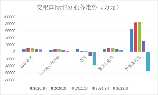 梳理交银国际细分业务,经纪业务、企业融资与承销业务、资管业务、保证金融资业务以及亏损大头投资与贷款全面下滑,此前依赖高风险敞口的投资及贷款业务从前些年盈利6-8个亿转为亏损5.4亿,成为交银国际亏损根源。