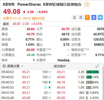 华盛资讯3月21日消息,银行股拉升大涨,KBW银行指数 $KBWR 涨超5%;3倍做多罗素金融股ETF $FAS 涨超6%。
