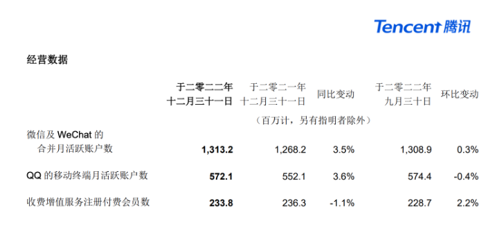 腾讯 $00700.HK 2022年Q4营收1449.5亿元,净利润同比增 19%