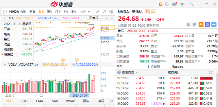 英伟达的最新涨势,使其距离超过巴菲特旗下的伯克希尔·哈撒韦,成为按市值计的全球第五大公司的距离不到100亿美元。市场情绪的变化帮助英伟达重新进入上涨轨道,ChatGPT和其他人工智能技术的兴起,为这只股票的大规模波动提供了催化剂。现在,英伟达的市值为6646亿美元,仅比伯克希尔的6730亿美元落后84亿美元。