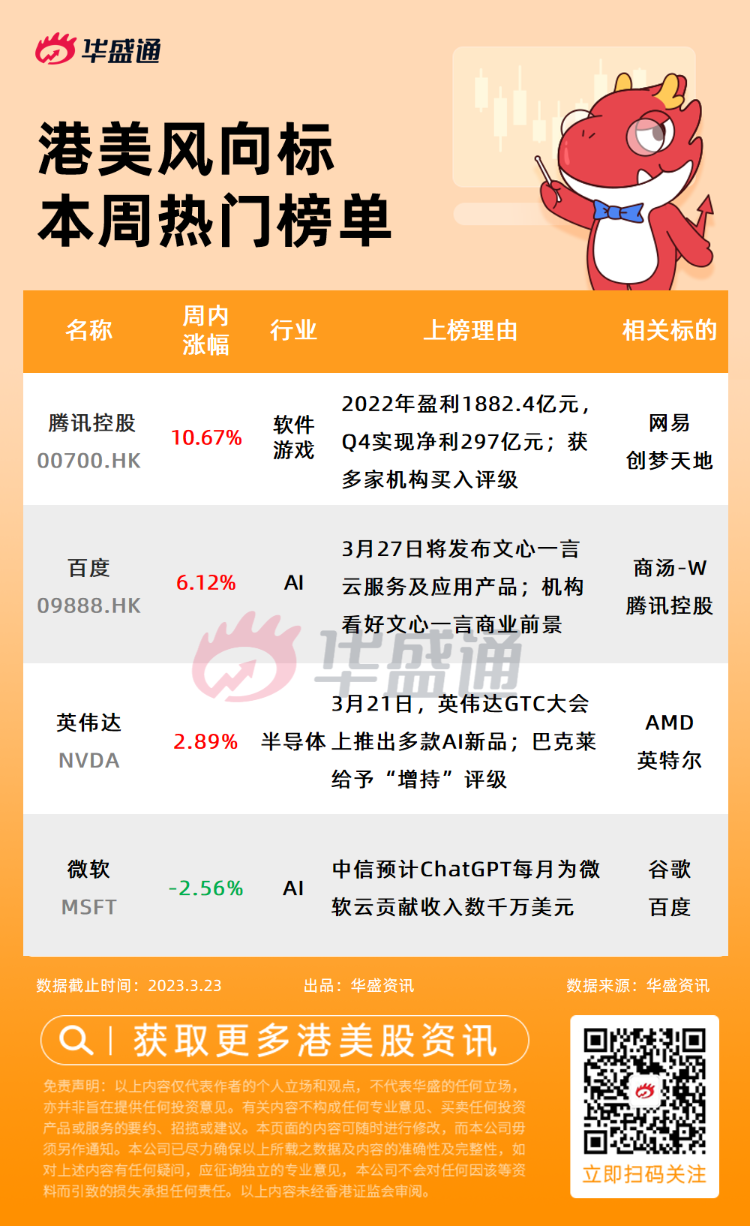 港美风向标 | 年内涨超80%,美银大赞英伟达;百度周涨6%,文心一言即将上线