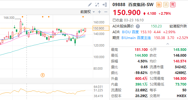 - 文心一言在 2C 端搜索生态重塑机会和 2B 领域产业级机会带来新的想象空间。广发证券认为文心一言能够迅速调整上线有赖于百度多年在人工智能领域的全栈布局和持续投入。 按 SOTP 估值法,港股合理价值167 港元/股,维持“买入”评级。