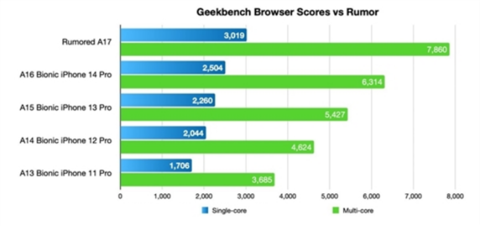 据此前相关爆料,全新的iPhone 15 Pro系列将首发搭载苹果A17处理器,GeekBench6跑分成绩显示,其单核成绩高达3986分,多核成绩高达8841分,堪称史诗级提升,引发外界大量关注。而近日海外知名爆料博主@Revegnus 最新透露,由于台积电3nm的良率并不是很理想,苹果基于3nm的A17处理器最终可能无法达到最激进的性能目标设定,不得不缩水。而且此前也有其他爆料显示,A17芯片可能更注重电池续航的改善,而不是处理性能,而这或许也是在暗示A17的性能提升将十分有限。