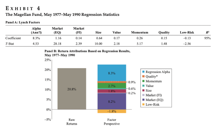 所以,林奇一直以来的令人印象深刻的业绩似乎是在低风险溢价的敞口为负值的情况下实现的(这与巴菲特不同,后者利用了低风险溢价)。
