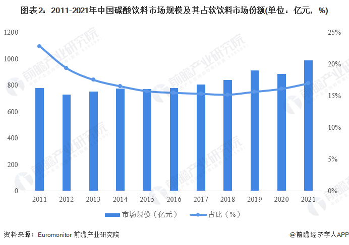 中国碳酸饮料市场规模接近990亿元