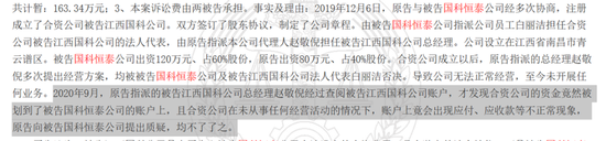 据(2021)赣0104民初813号文件显示,2019年,国科恒泰与南昌恒律企业管理咨询中心(有限合伙)以60%/40%比例共同成立江西国科盛世医疗科技有限公司,位于江西省南昌市,主要从事医疗器械的入院直销业务。两者因股份纠纷起诉至法院,于2020年4月21日立案。