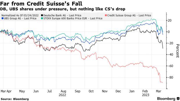 在CDS飙升和股价大跌之下,德银在3月24日欧洲交易时段发布紧急公告称,将提前赎回二级次级债券。此类举措通常是为了让投资者对公司资产负债表的实力有信心,但股价的反应表明,这一信息并没有传递出去。数据显示,德银在法兰克福交易所上市的股票周五收跌8.53%,其美股在周五也收跌超3%。
