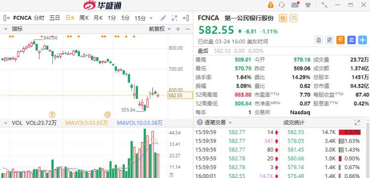 截至上周五,总部位于北卡罗来纳州罗利的第一公民银行市值为84亿美元。