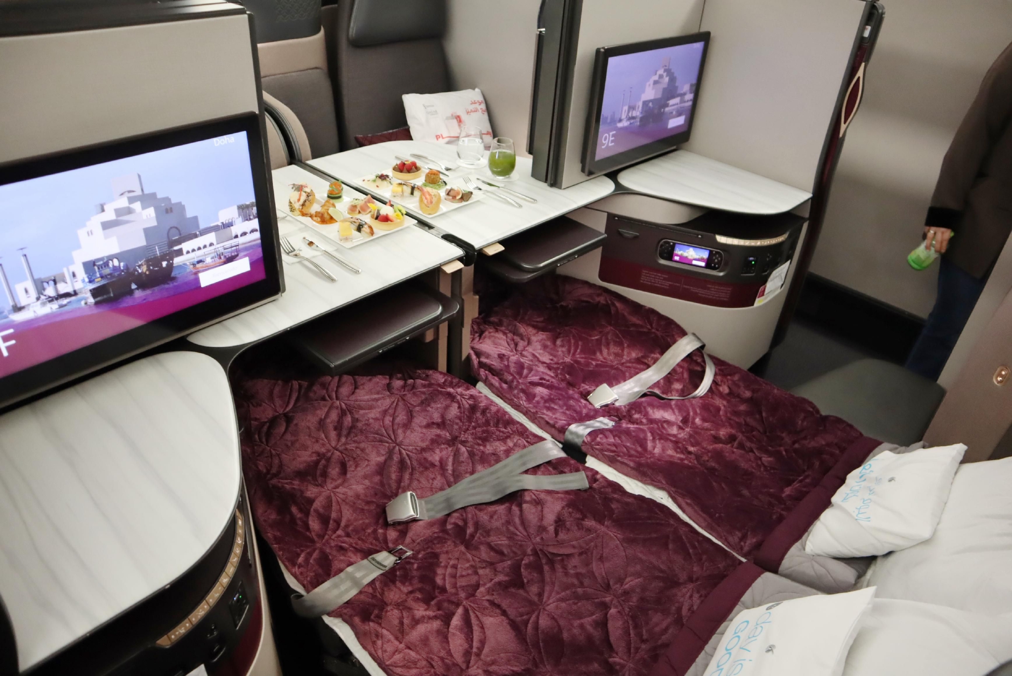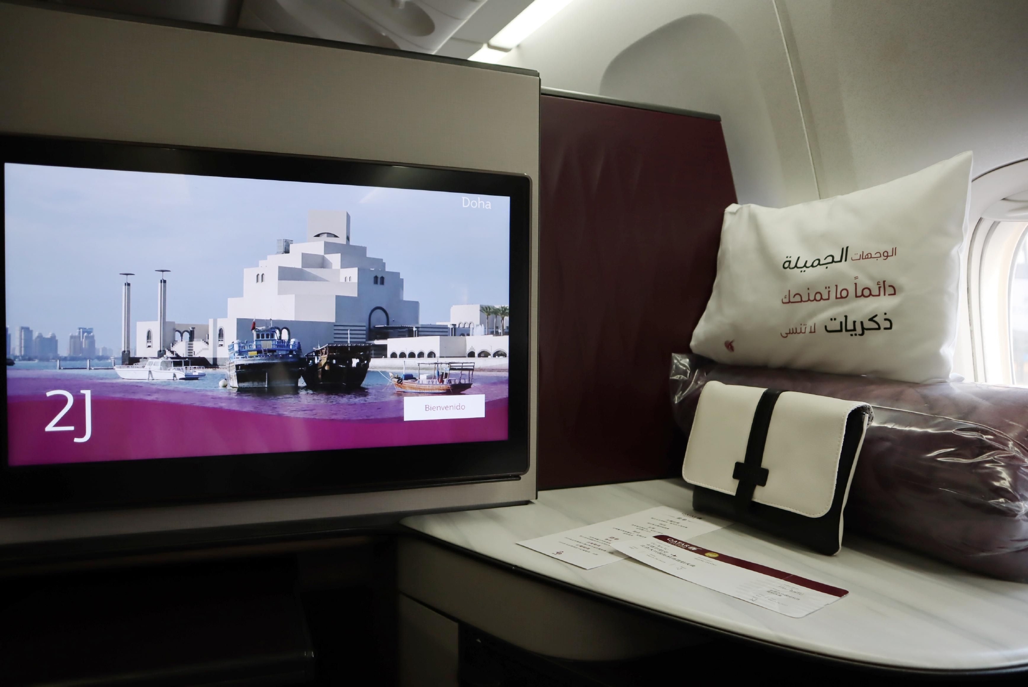 此外,商务舱乘客还可享受卡塔尔航空屡获殊荣的Qsuite商务舱座椅,其设有私密式滑动门及可显示“请勿打扰(DND)”的指示器。Qsuite采用1-2-1的座椅布局,可为乘客提供更宽敞、私密、舒适且保持充分社交距离的商务舱体验。乘客还可享受来自法国标志性香氛品牌Diptyque的专属洗漱包及礼盒,包含分别为男性和女性乘客量身定制的Diptyque精选产品。